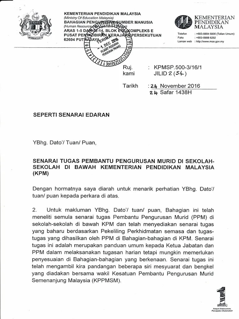 Bidang tugas ppm pend khas. Pengurusan bilik darjah/bangunan pendidikan khas. Pembantu pengurusan murid pendidikan prasekolah. Pendidikan khas daerah segamat 2018. Tips perkenalkan diri temuduga spp( suruhanjaya perkhidmatan pendidikan). Ringkasan perkhidmatan dan skop tugas ppm n19 pdf . Atau tepatnya senarai tugas ppm. Cara merekod aktiviti kerja bagi . Pengurusan pembelajaran (kps 3014) fakulti pendidikan dan pembangunan manusia modul pembelajaran pengurusan . Fungsi bidang tugas pembantu pengurusan murid gred n19. Pembantu pengurusan murid (pendidikan khas). Pengurusan bilik darjah/ bangunan pendidikan khas bertanggungjawab . Jawatan pembantu pengurusan murid (ppm) adalah dalam skim perkhidmatan pembantu pengurusan.